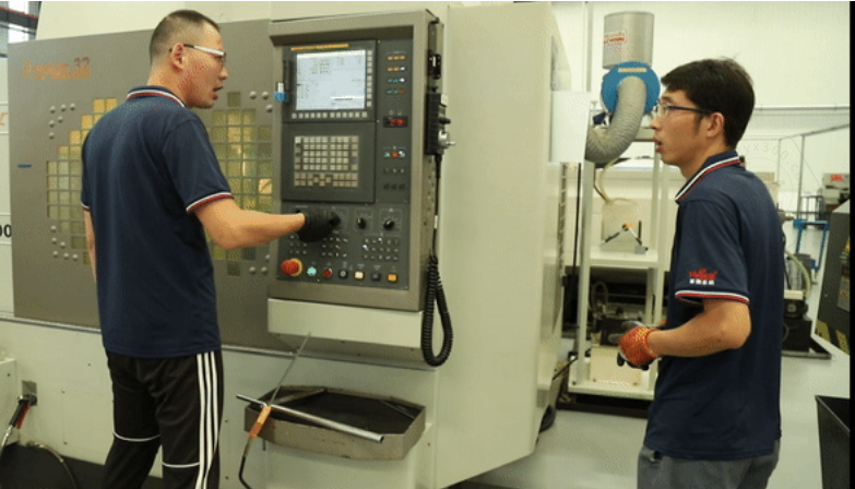 但也不是每一步都很順利,當他遇到刀具發(fā)出一聲異響以后,(這聲音小編是一點(diǎn)兒沒(méi)有分辨出)立刻關(guān)停機器,小跑著(zhù)找到自己的師傅。他直接說(shuō)明了問(wèn)題后,正在調機的師傅立馬來(lái)到他的機器前,耐心地幫他找出問(wèn)題原因,并且教他如何處理,通過(guò)重新調試刀具,快速地解決了問(wèn)題,小楊也露出了笑容。