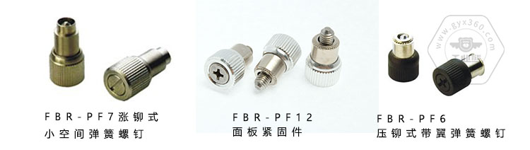 例如:FBR-PF12面板螺絲(面板緊固件)、FBR-PF6壓鉚式帶翼彈簧螺釘等等。