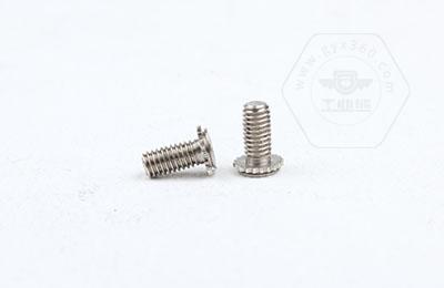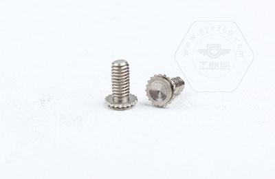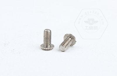 在使用過(guò)程中需在基體上開(kāi)一個(gè)小孔,將壓鉚螺釘放入孔內,采用鉚壓設備平行的均勻的在頭部平壓,因壓鉚螺釘的頭部下有齒紋壓花,當壓入后,基體在壓鉚螺釘的周?chē)a(chǎn)生變形,和齒紋發(fā)生咬合現象,從而形成一個(gè)牢固的外螺紋。