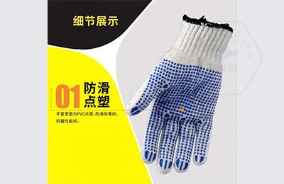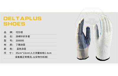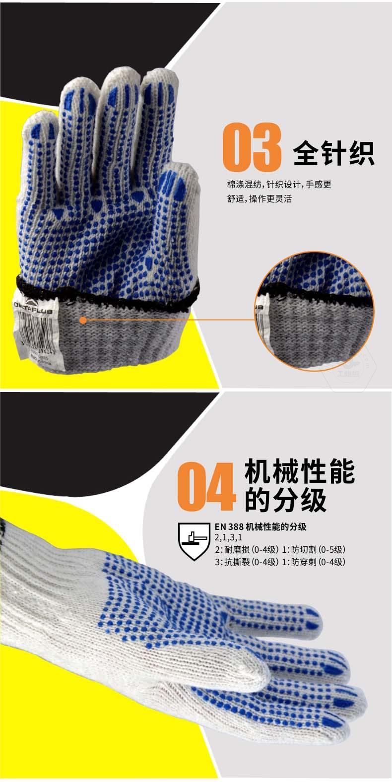 商品名稱(chēng):代爾塔 PVC點(diǎn)膠 滌棉 線(xiàn)手套 工作 勞保手套 防滑耐磨損抗撕裂 208006 白色/藍色9#