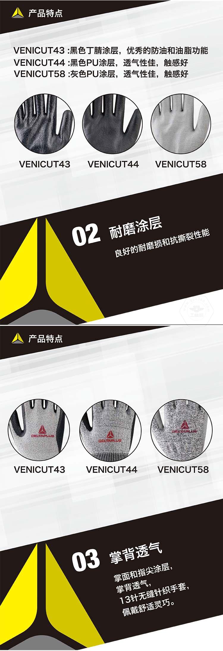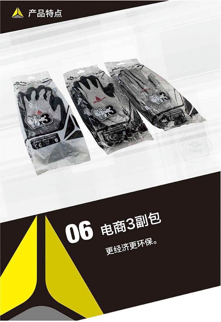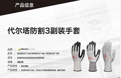 商品名稱(chēng):代爾塔 3副裝防割勞保工作手套 VENICUT43(3級耐磨4級防割)