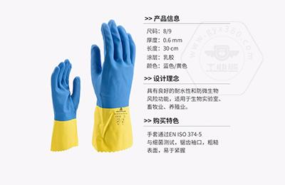 商品名稱(chēng):代爾塔 防化勞保手套 天然乳膠防滑防水性 防微生物 畜牧業(yè) 養殖業(yè)用 201330 9號(L)