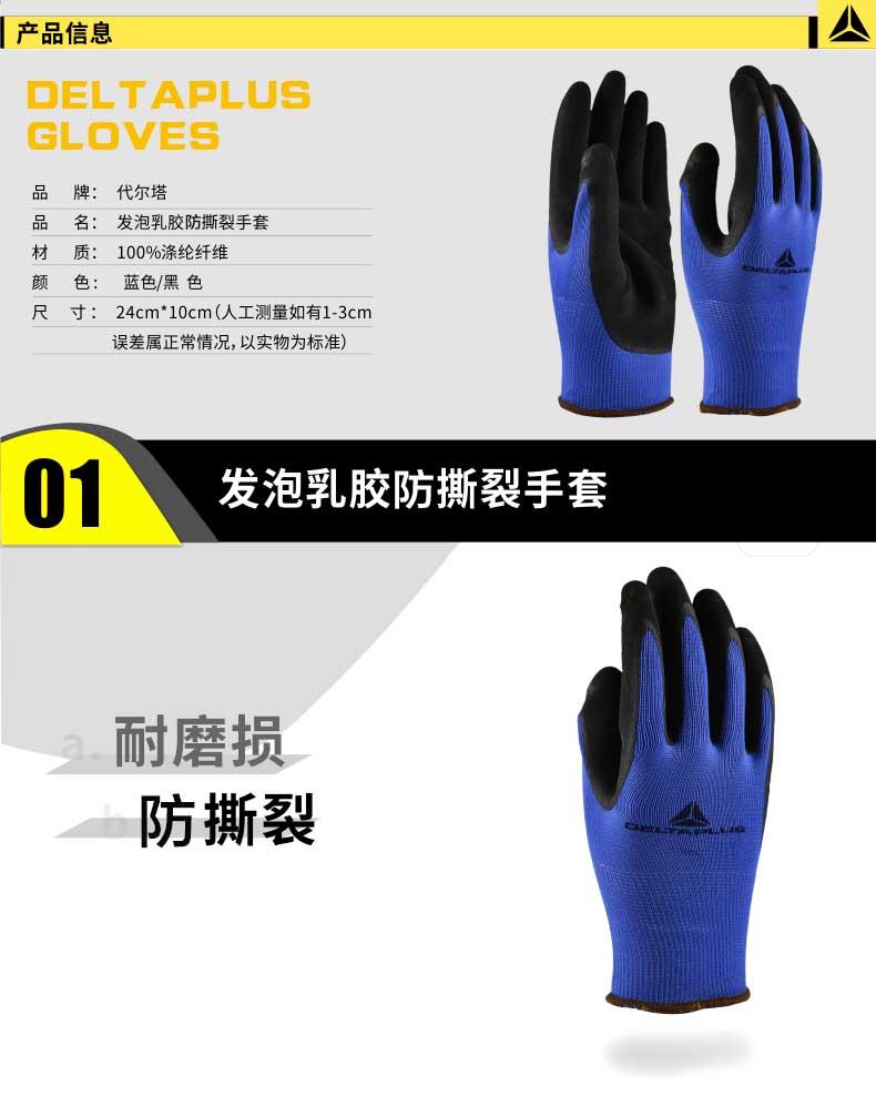 商品名稱(chēng):代爾塔 201631 勞保手套 工作手套 透氣舒.適 乳膠涂層抗撕裂 藍色