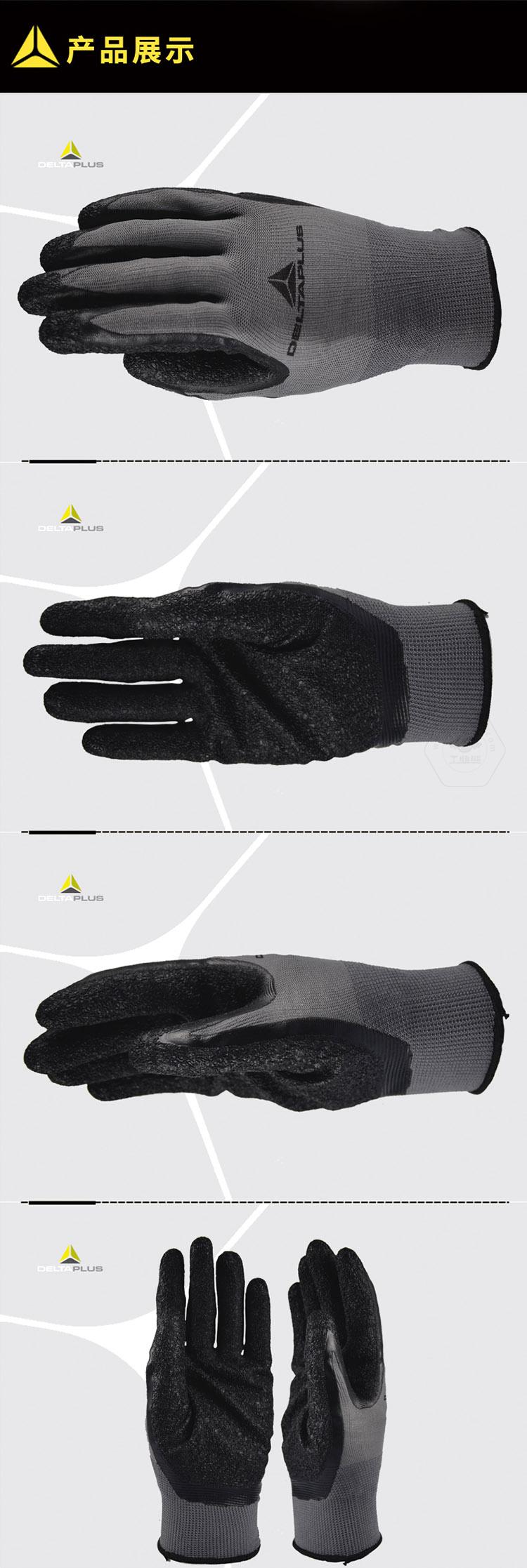 商品名稱(chēng):代爾塔 乳膠涂層手套 滌綸防滑 透氣 彈性 抓握性強 耐磨抗撕裂 201630 黑色