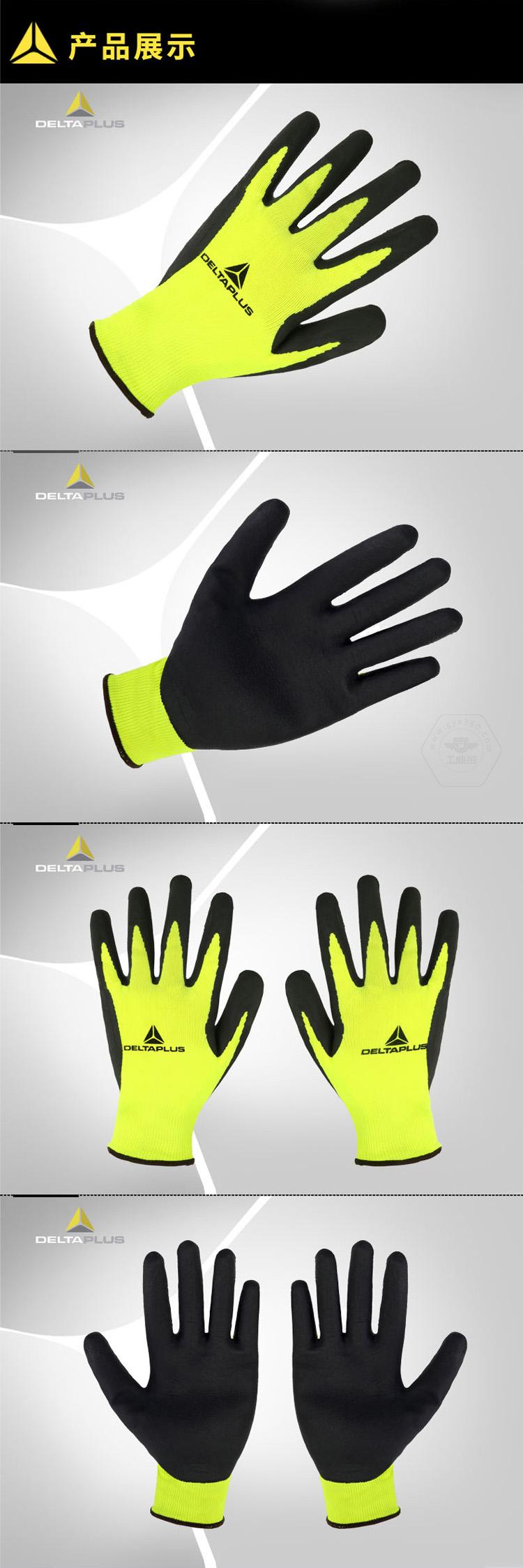 商品名稱(chēng):代爾塔 工作熒光勞保手套 乳膠涂層耐磨抗撕裂強 透氣 棉紗針織 201733 1雙