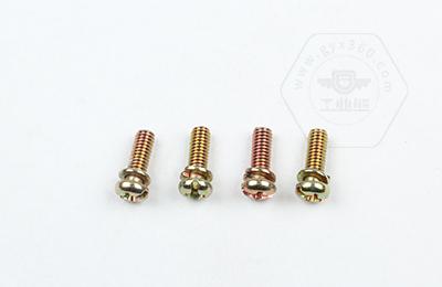 • 產(chǎn)品描述:組合螺釘,又稱(chēng)為組合件,是指組合供應的一類(lèi)緊固件,如將某種中期螺釘或螺栓、自攻螺釘與平墊圈或彈簧墊圈、鎖緊墊圈組合供應。 何謂二組合、三組合呢?二組合就是一螺絲配一平墊或是彈墊組合而成,三組合是螺絲配一彈墊和一個(gè)平墊組合而成。