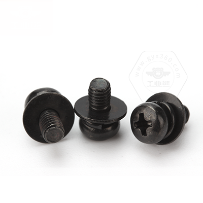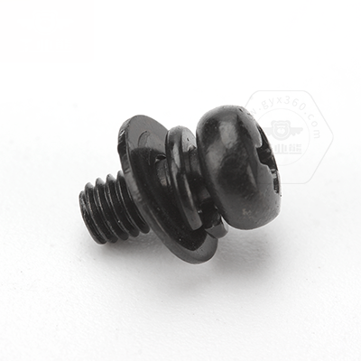 • 碳鋼4.8級黑色鋅鎳合金(48/360h)十字槽盤(pán)頭帶平彈墊組合螺釘GB9074.4N