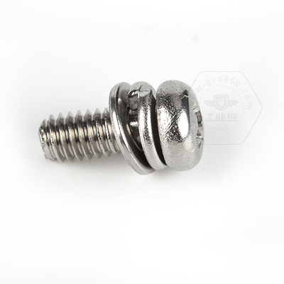• 產(chǎn)品描述:Q/DM-01 十字槽盤(pán)頭帶平彈墊組合螺釘,也稱(chēng)為企標盤(pán)頭三組合螺絲、十字半圓頭帶平彈墊組合螺絲、盤(pán)頭帶平彈墊連接副、十字盤(pán)頭帶平彈墊組合件機螺絲、十字盤(pán)頭螺釘平彈墊組合。螺釘為企業(yè)標準 Q/DM-01-2015,標準規格范圍M1.6-M6,可選材質(zhì)有不銹鋼304,和H62銅。該螺釘由8 十字槽小盤(pán)頭螺釘、 組合件用彈簧墊圈以及平墊圈構成,先將墊圈和螺釘穿在一起,再經(jīng)過(guò)搓絲而組成。組合后墊圈自由轉