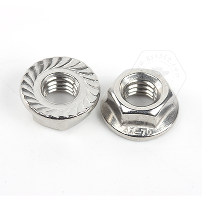 • 產(chǎn)品描述:DIN6923 六角法蘭帶齒螺母,又名六角法蘭面帶齒螺母、六角法蘭帽、六角帶墊帶防滑齒螺帽、法蘭面防松帶齒螺母、花齒法蘭防松螺母。DIN6923 六角法蘭帶齒螺母,法蘭面與六角螺母一體成型,法蘭面帶花齒比平面法蘭鎖緊力更強。法蘭帶齒的設計具有防滑止動(dòng)的作用,裝配時(shí)不需要額外使用平墊、彈墊,使用起來(lái)更為方便。DIN6923標準規定了螺紋規格為M5-M20;性能等級為碳鋼8、10、12和不銹鋼A2-7